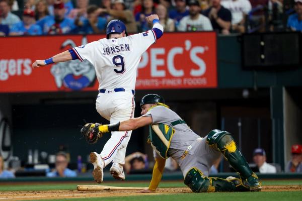 Josh Jung hit a go-ahead, two-run homer in the sixth inning as the Texas Rangers beat the Athletics 4-3 on Saturday in Arlington, Texas.